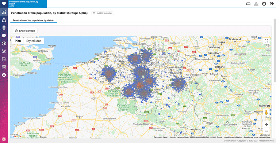 Cartografía del índice de penetración de la población por municipio o sector estadístico.