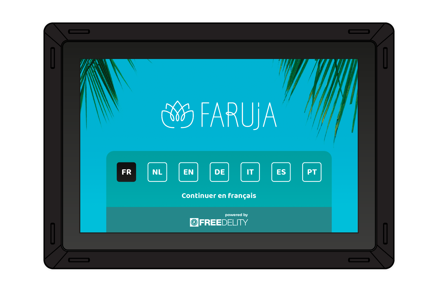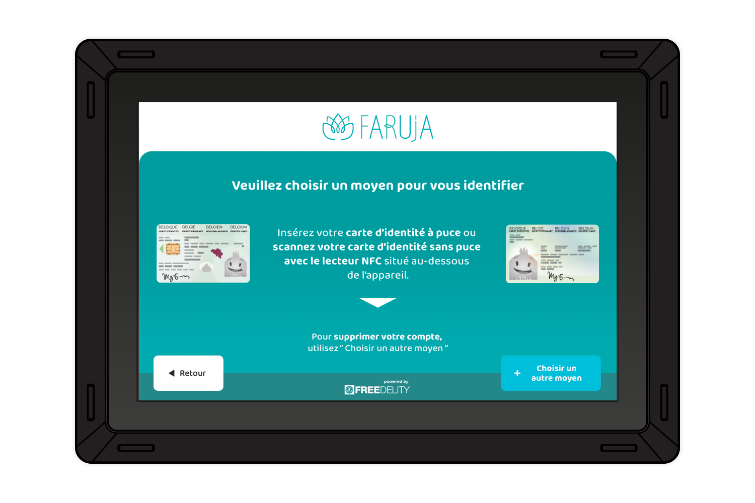 - Un écran tactile pour leur permettre d’encoder eux-mêmes leur adresse e-mail et numéro de mobile et de confirmer leur consentement.