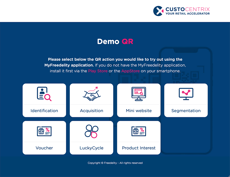 Diese Seite stellt die Möglichkeiten von QR-Codes und der MyFreedelity-App vor.
