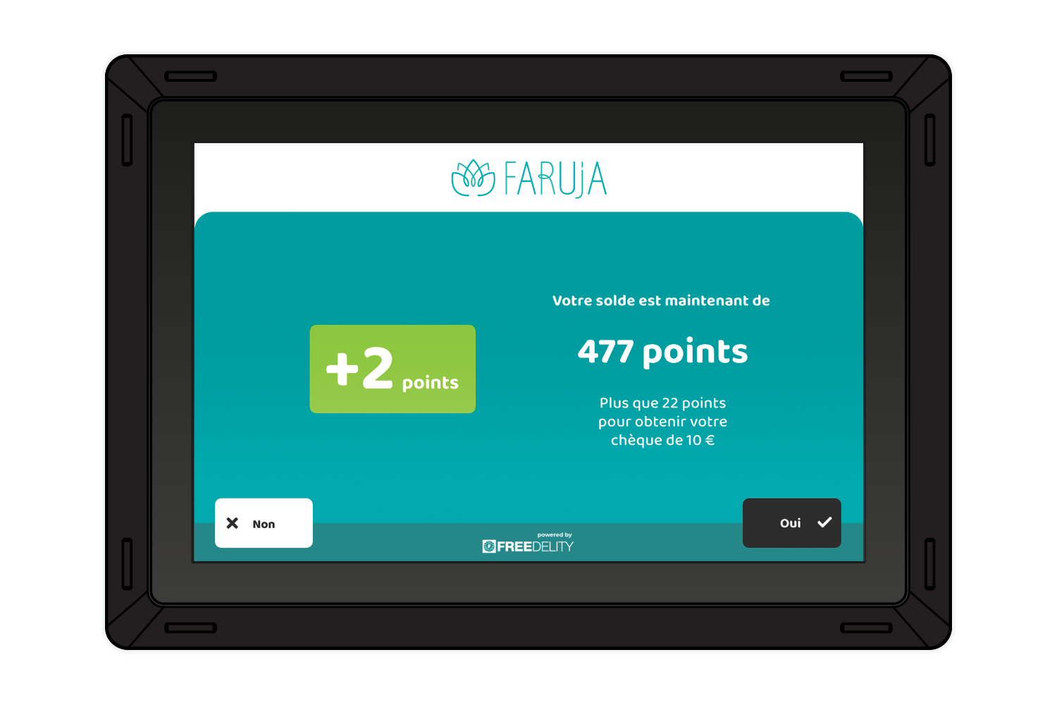 - Un écran en couleur pour diffuser vos messages, attirer l’attention des clients et souligner l’utilité de s’identifier et d’adhérer au programme.