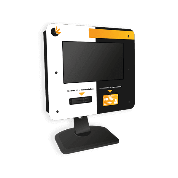 Equipado con impresora, lector de código de barras y lector eID, nuestro Totem sigue siendo relativamente ligero. Con su pantalla de 21.5 pulgadas y panel personalizable, sin duda atraerá la atención de sus clientes en tienda. Puede fijarse a la pared o a un soporte.